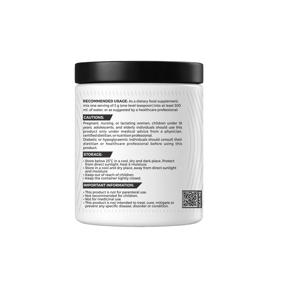 RECOMMENDED USAGE: As a dietary food supplement, mix one serving of 3 g (one level teaspoon) into at least 300 ml of water, or as suggested by a healthcare professional.